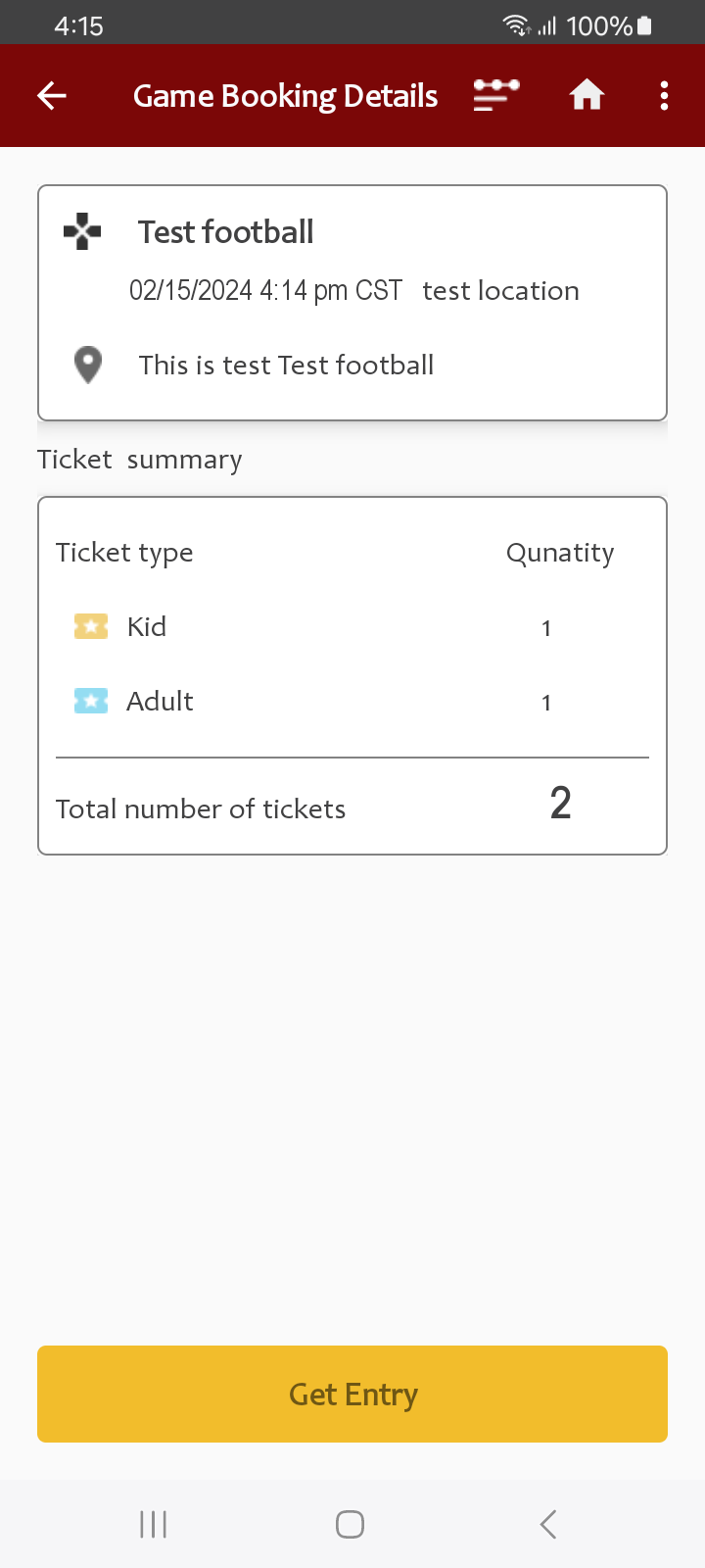 - Ticket Management: After booking, users can view and scan their tickets during the game.