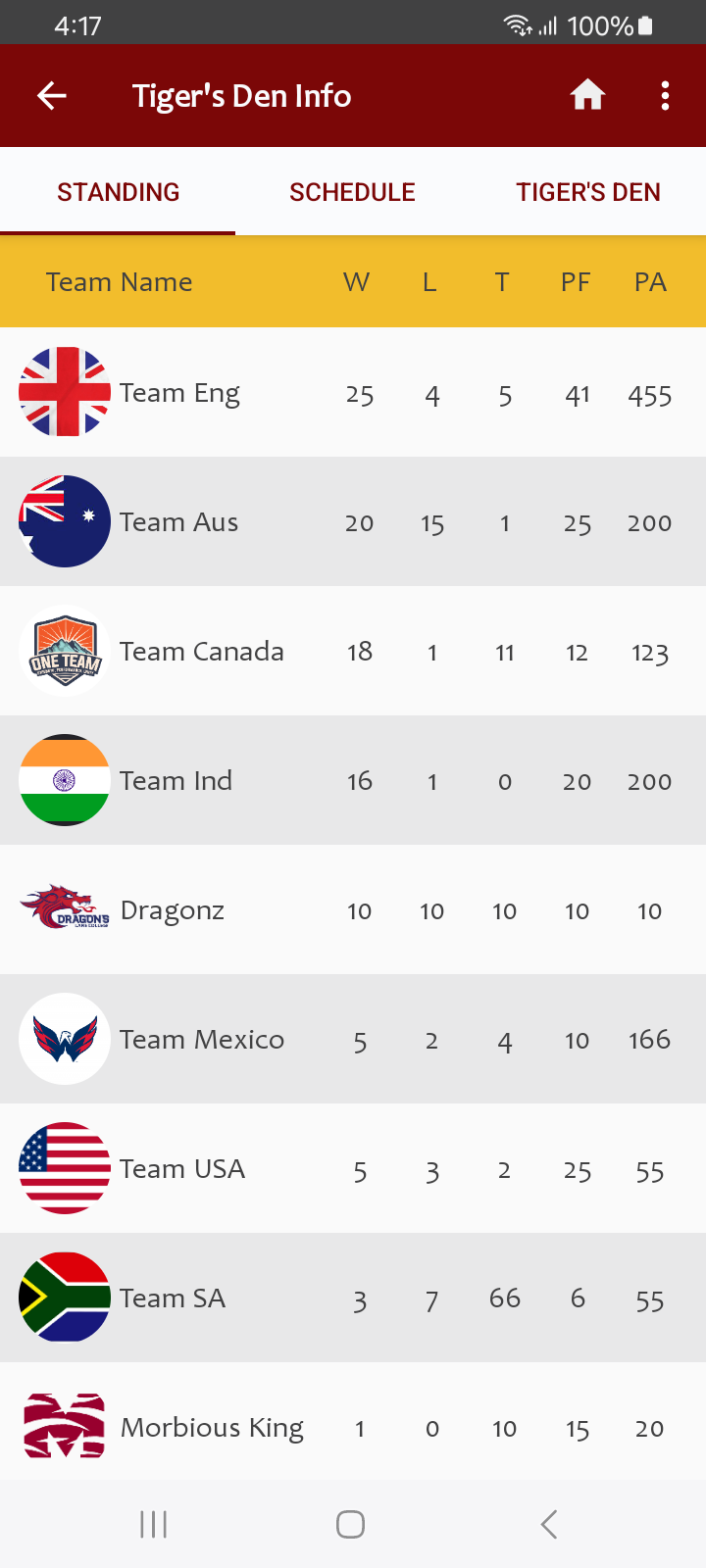 - Game Details: Provides details for upcoming, today's, and past games.
