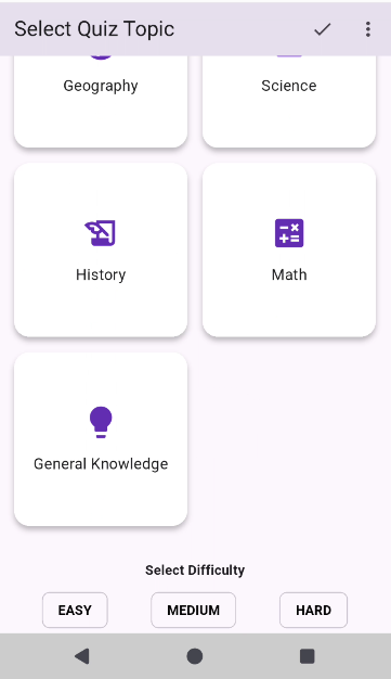 - Quiz Category Selection